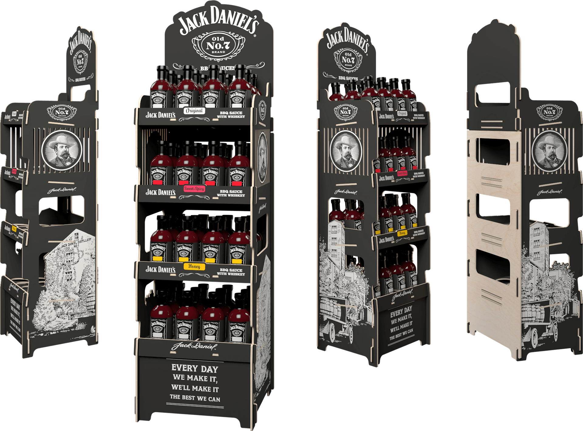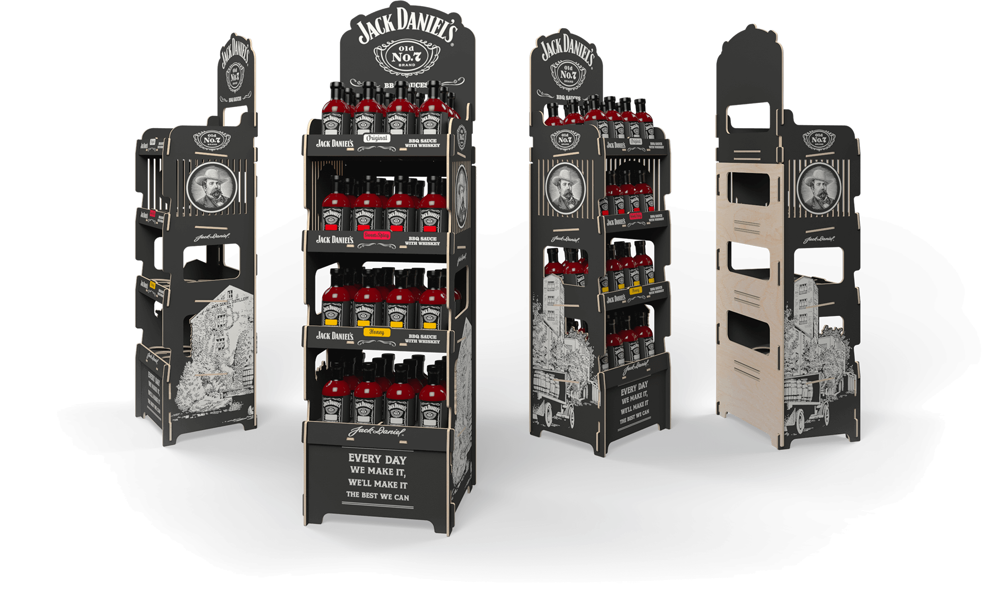 Previous display solutions had failed to meet their expectations. They were deemed too ordinary and did not fully reflect the premium nature of the brand. The client needed a display that would embody Jack Daniel’s style, tradition, and—most importantly—its renowned quality.