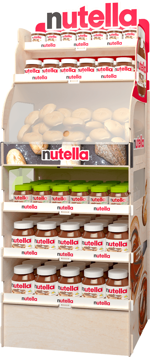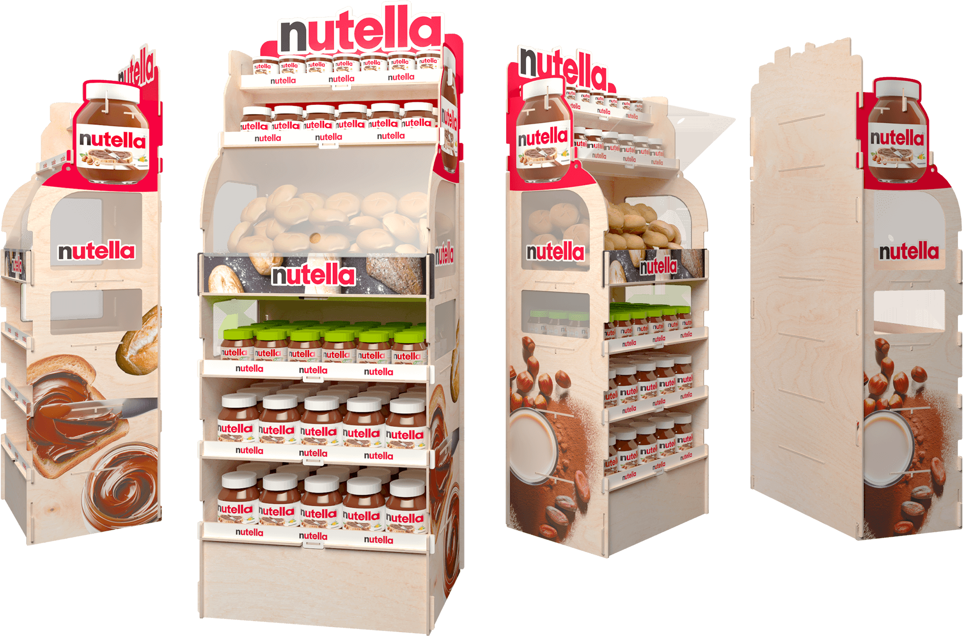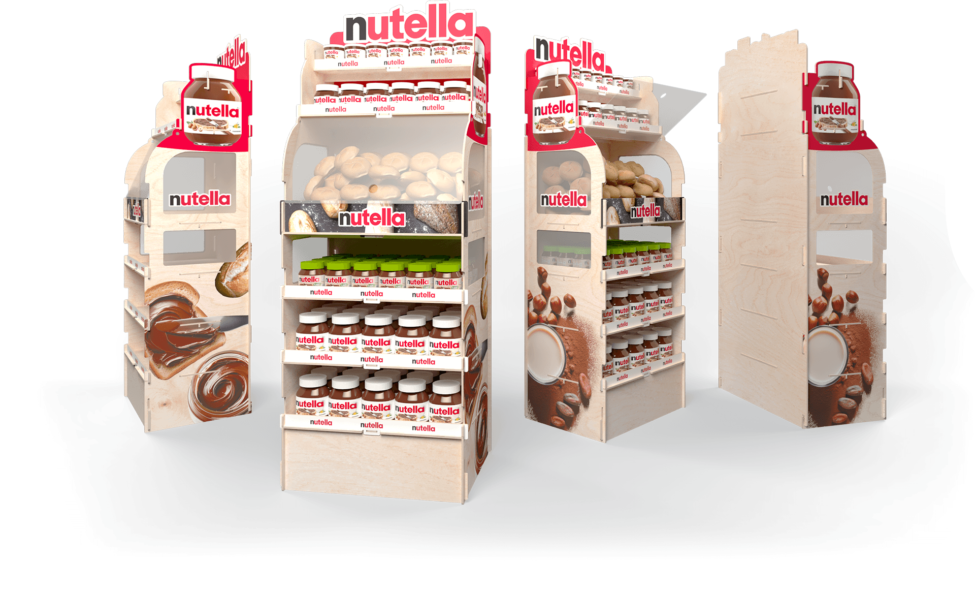 The eco-friendly plywood display stands received positive feedback from both Nutella’s sales teams and their customers. The materials and design perfectly matched the brand’s values, reinforcing its ability to blend aesthetics with environmental responsibility.