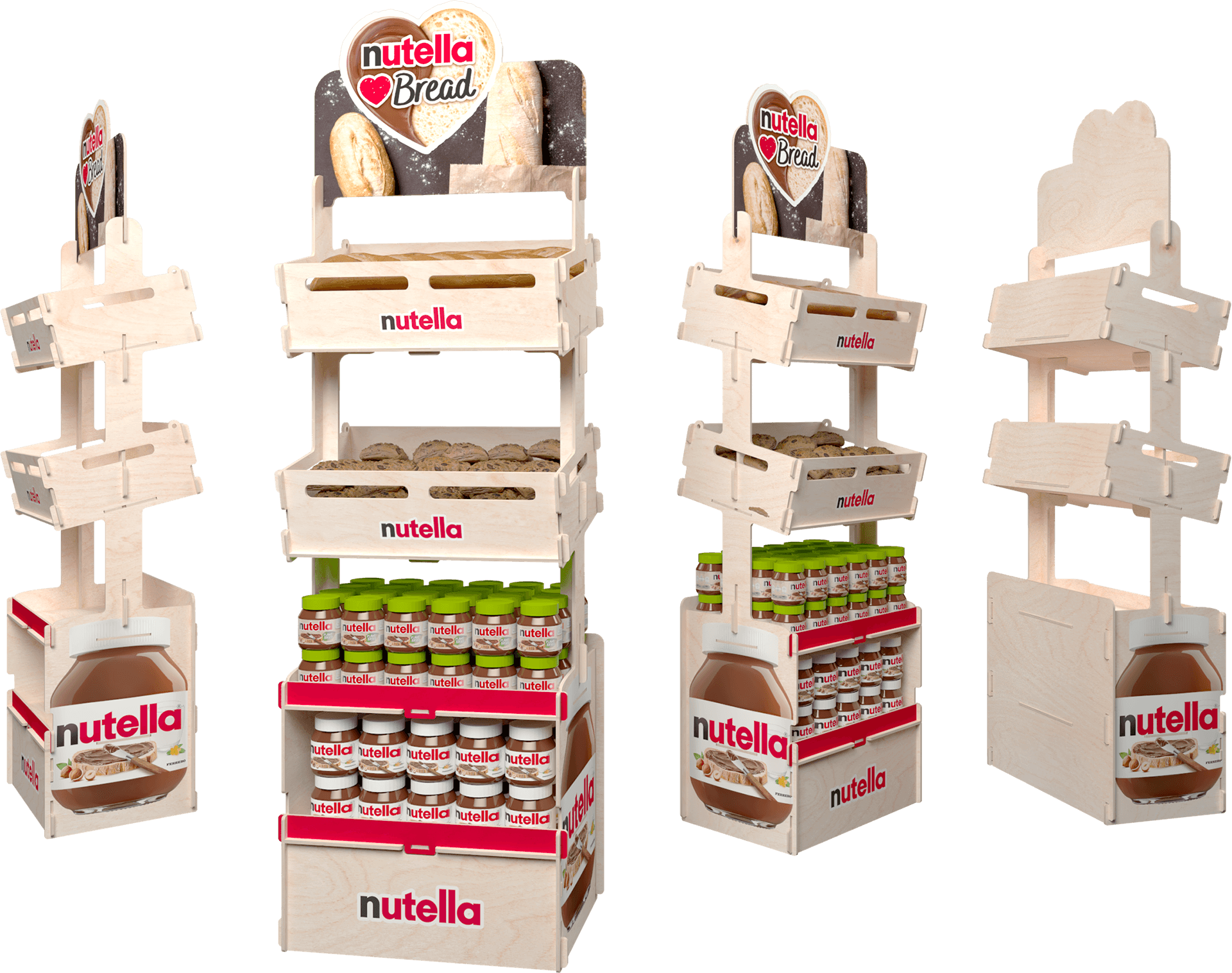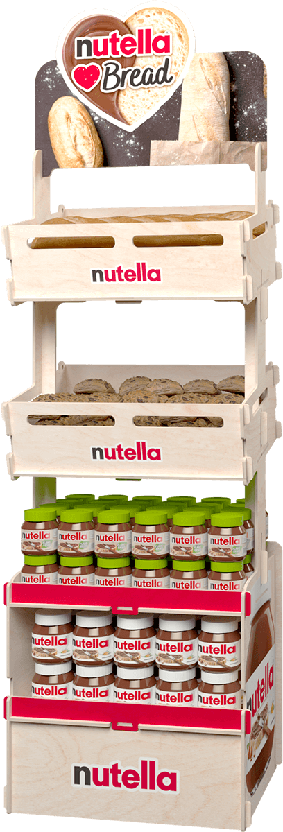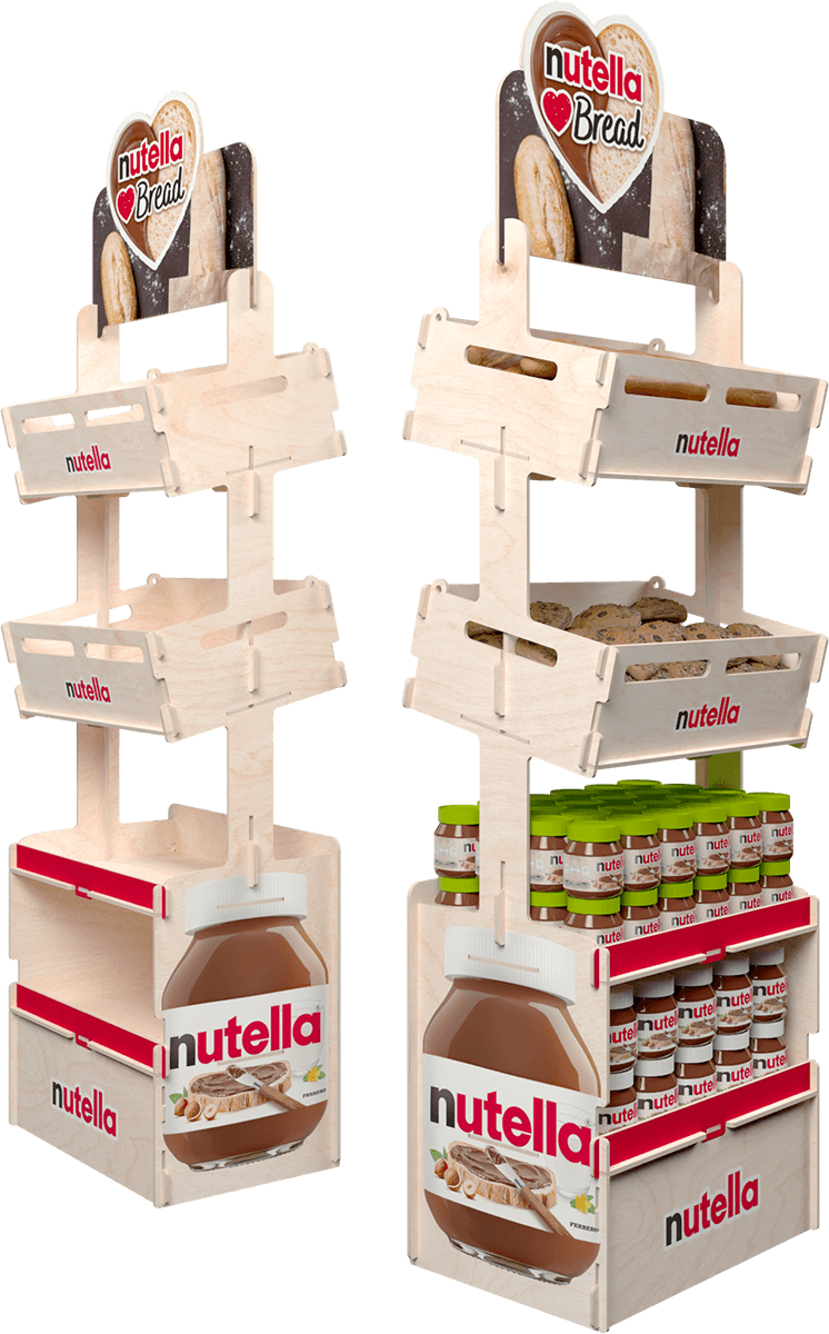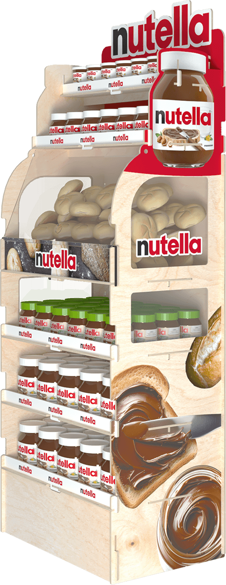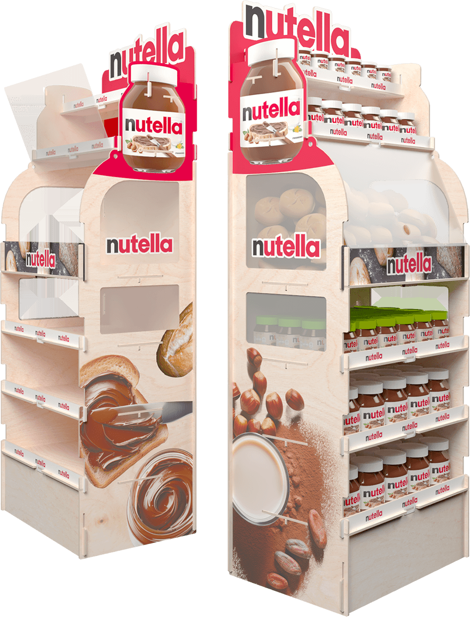 The client sought display stands that would not only reflect Nutella’s iconic and recognizable branding but also be more eco-friendly and durable than the existing models.